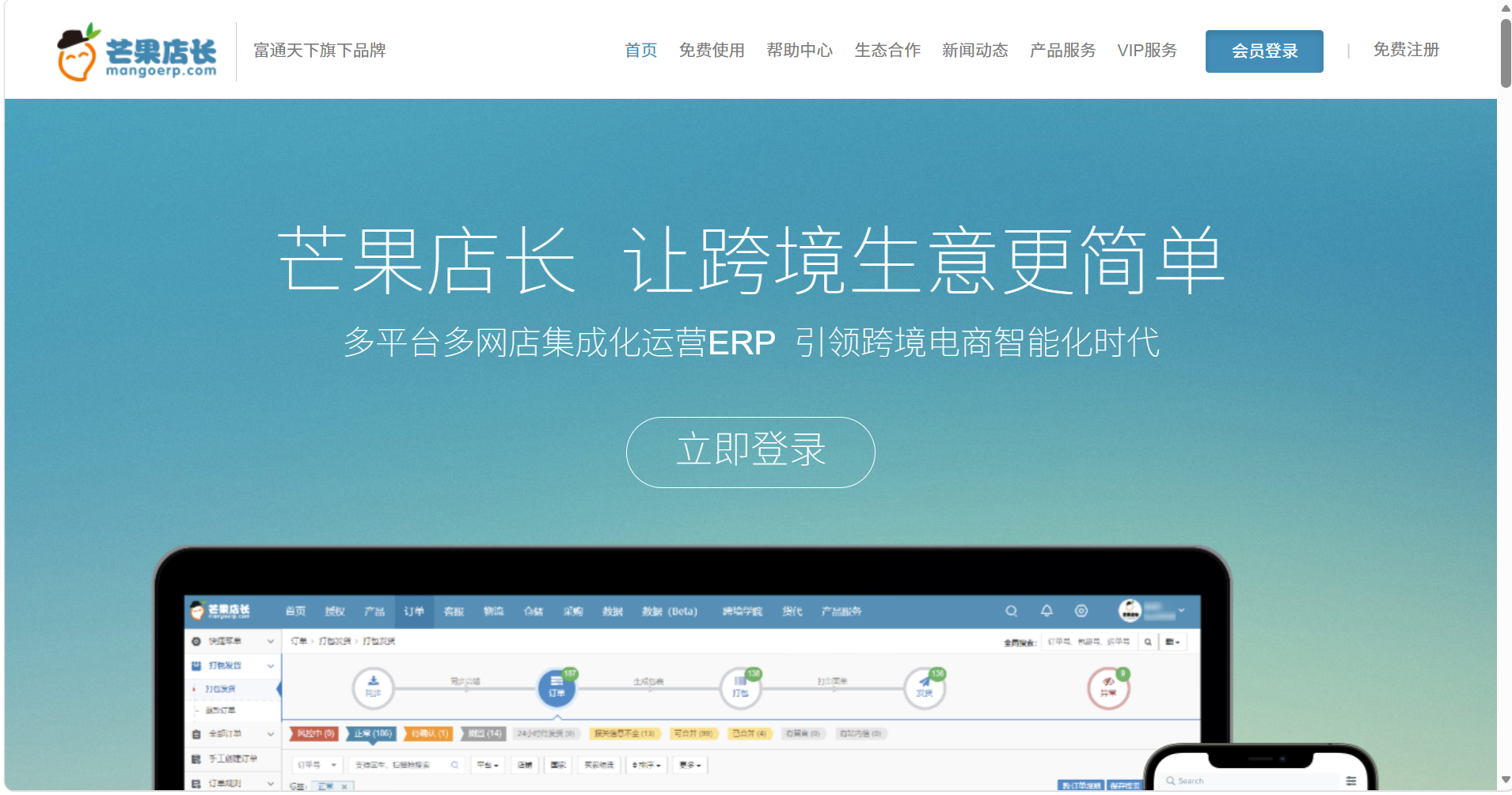 芒果店长ERP:2014年上线,是国内首批布局SaaS模式的跨境电商ERP系统,累计服务超50万全球电商卖家。平台打通20余家主流跨境电商渠道,对接300多家物流企业官方接口,深度串联电商店铺、物流仓储与商家运营,为跨境卖家提供一站式店铺管理解决方案。